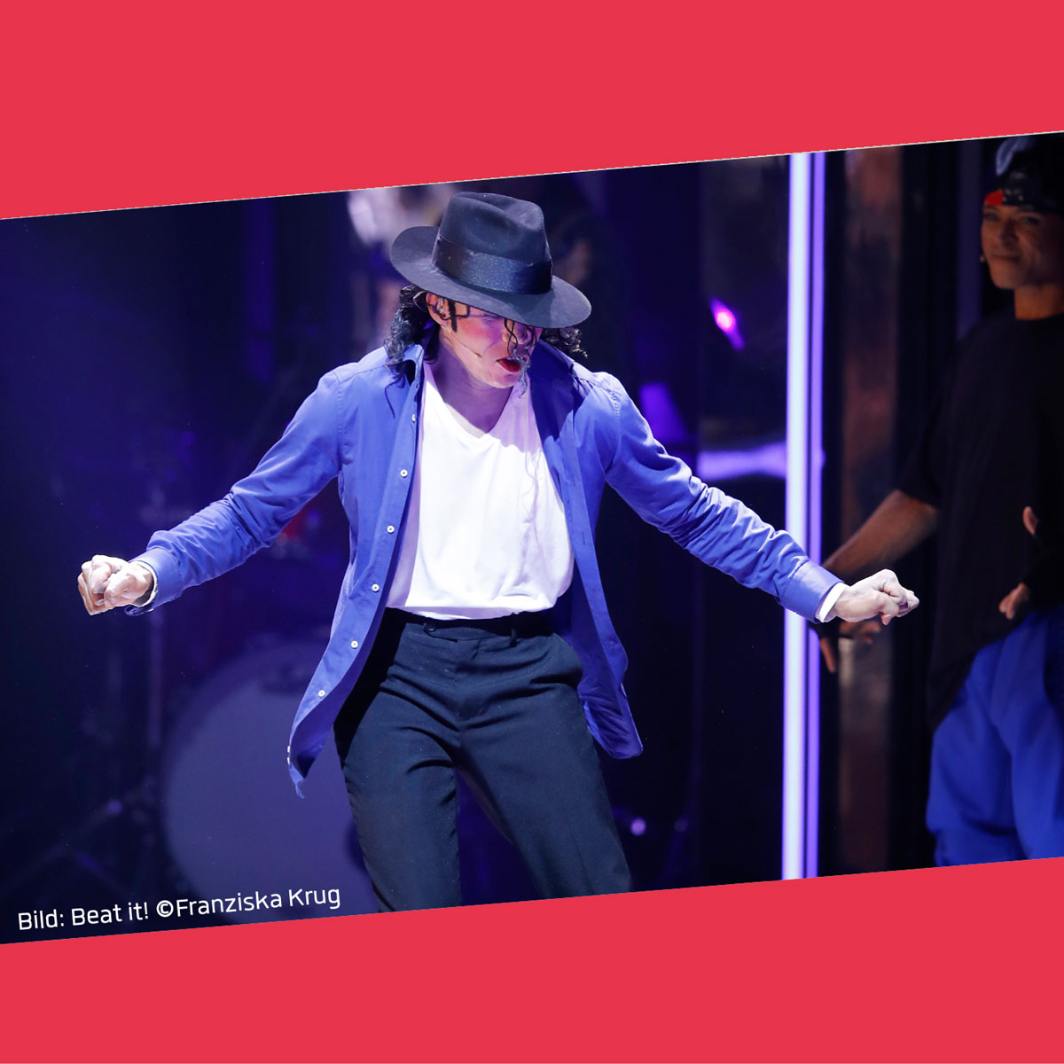 «BEAT IT! – Die Erfolgsshow über den King of Pop!» ist ein spektakuläres Live-Show- Erlebnis über den erfolgreichsten Entertainer aller Zeiten, dessen Musik für immer unvergessen bleibt. Die Hommage zeichnet in spektakulären Bildern Michael Jacksons unvergleichliche Solokarriere nach und präsentiert dabei live 20 seiner grössten Hits wie «Billie Jean», «Smooth Criminal», «Thriller», «Man In The Mirror», «Black Or White» und natürlich «Beat It».